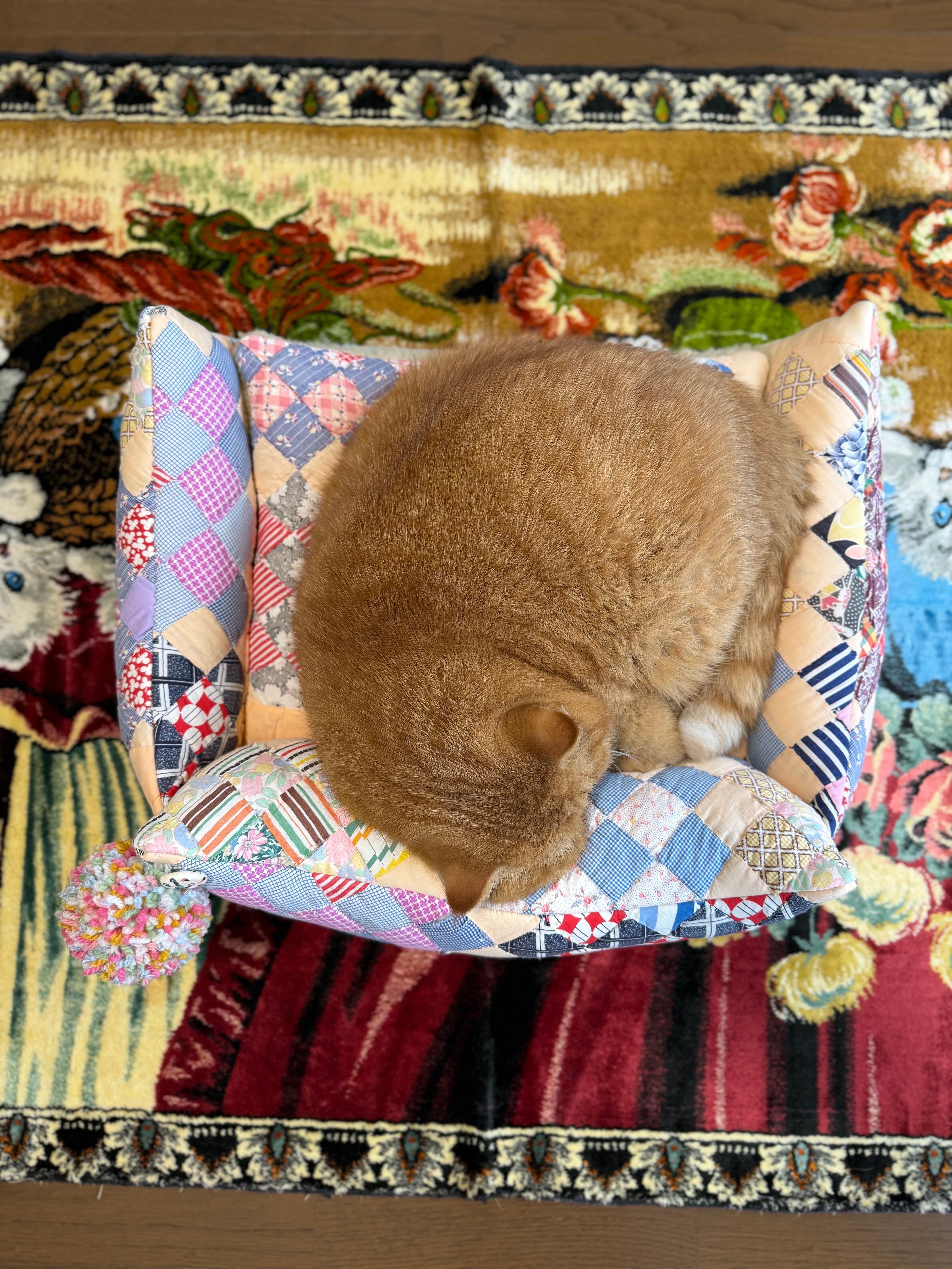 中にはたっぷりの綿を詰めへたりにくくし、猫ちゃんがもたれかかってもしっかり支えられます