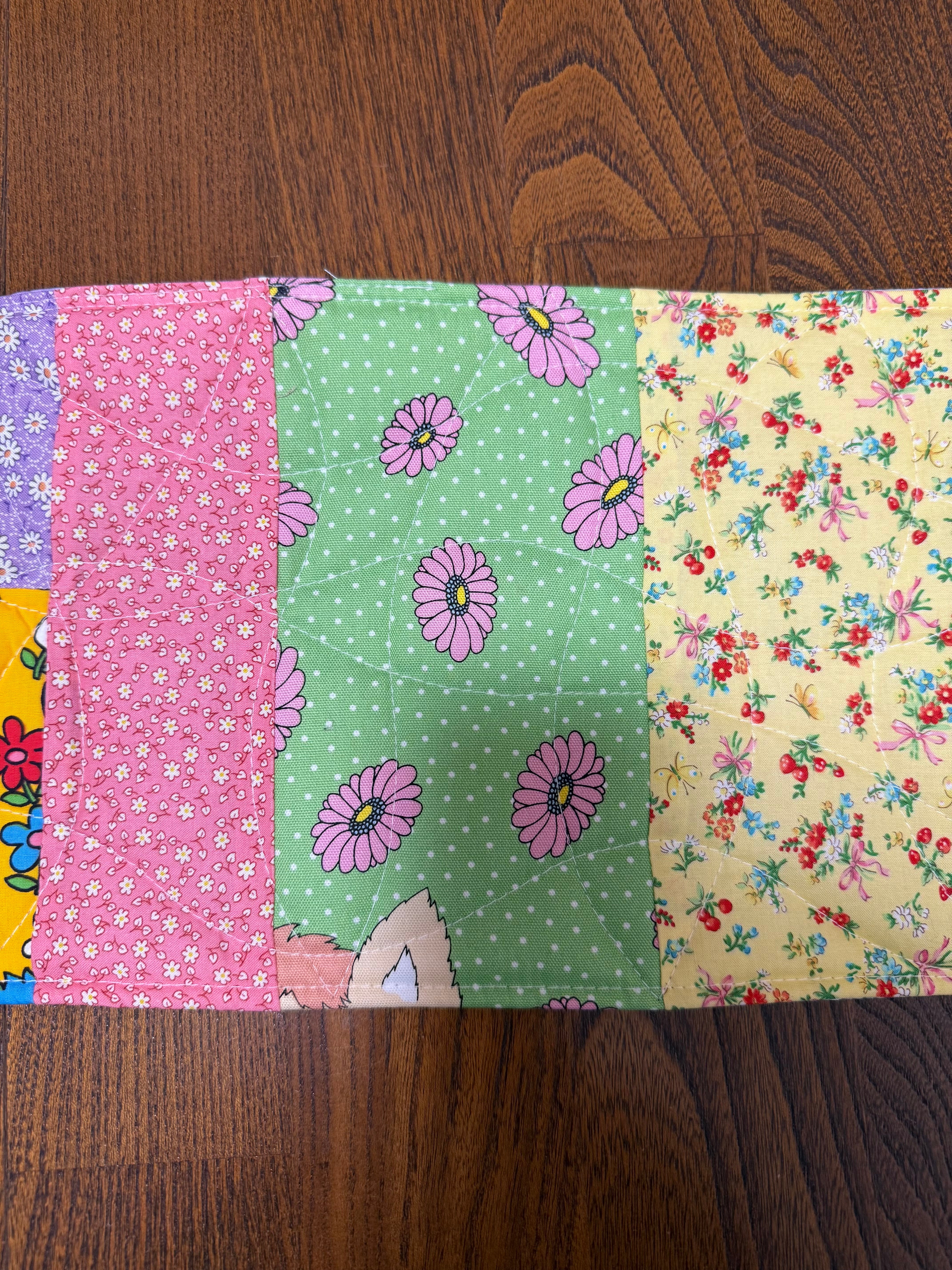中綿を挟みキルティングステッチを施すことで丈夫に仕上がり汚れたらすぐに洗えるマットです