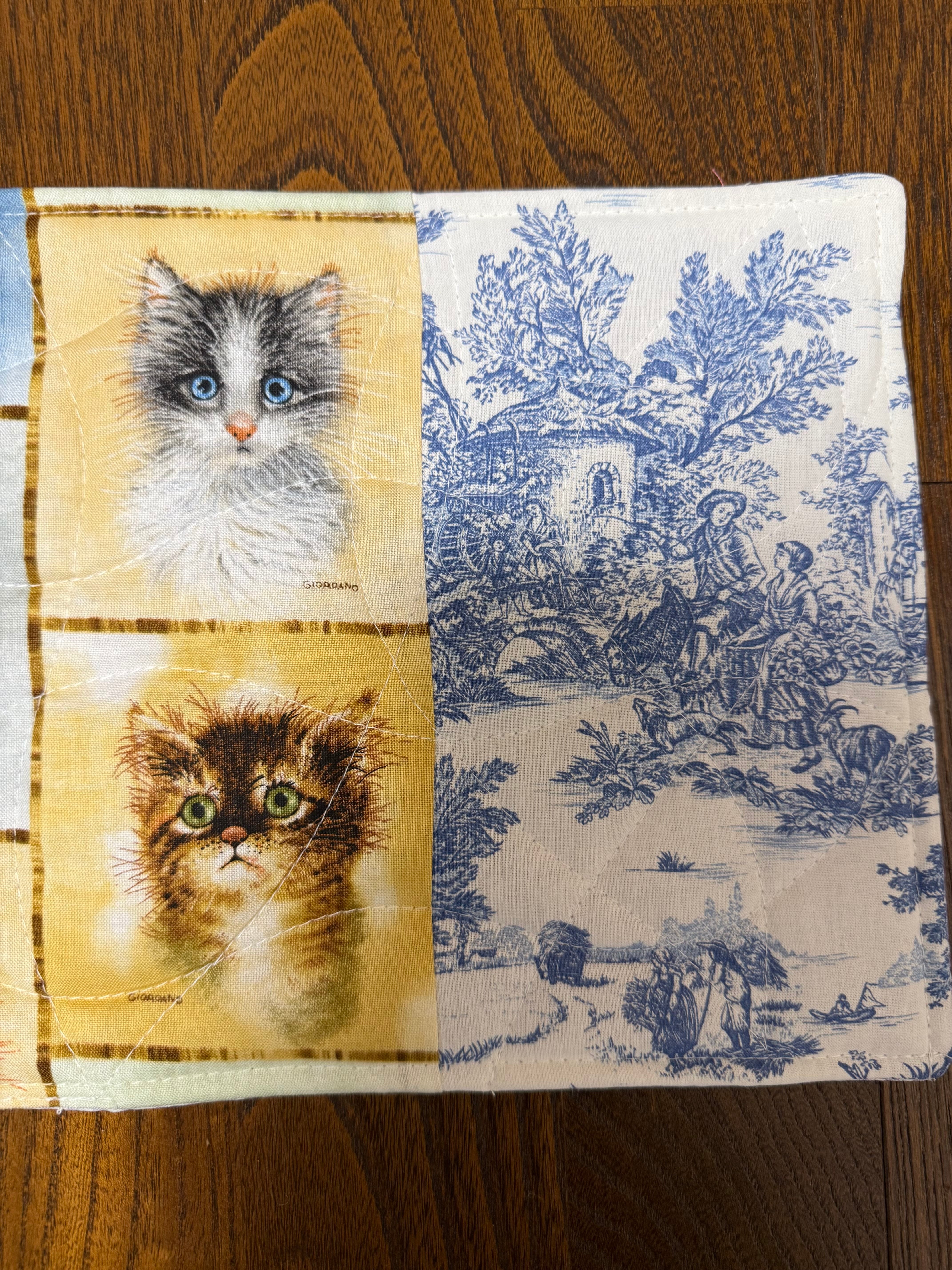 中綿を挟みキルティングステッチを施すことで丈夫に仕上がり汚れたらすぐに洗えるマットです