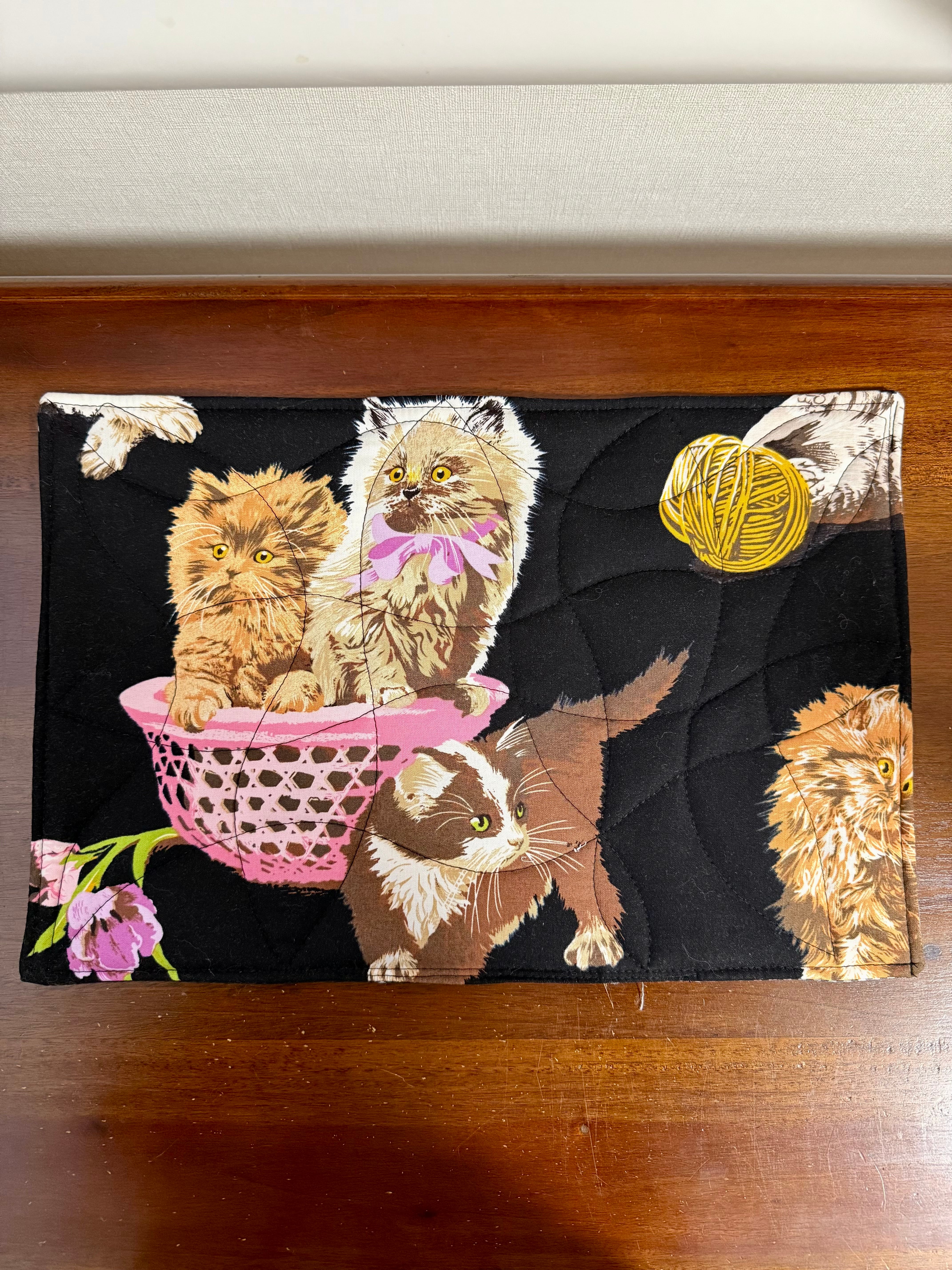 中綿を挟みキルティングステッチを施すことで丈夫に仕上がり汚れたらすぐに洗えるマットです