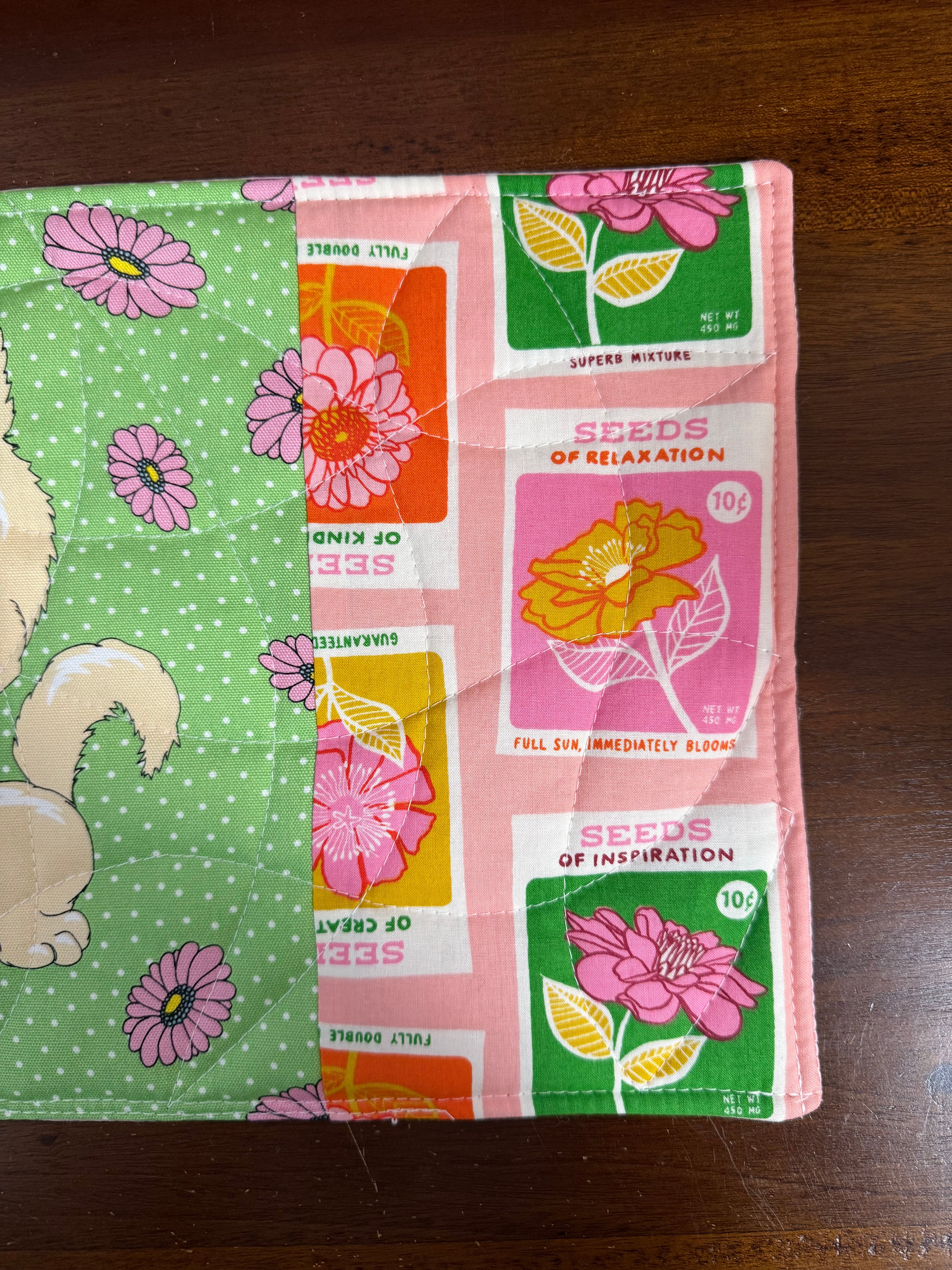 中綿を挟みキルティングステッチを施すことで丈夫に仕上がり汚れたらすぐに洗えるマットです