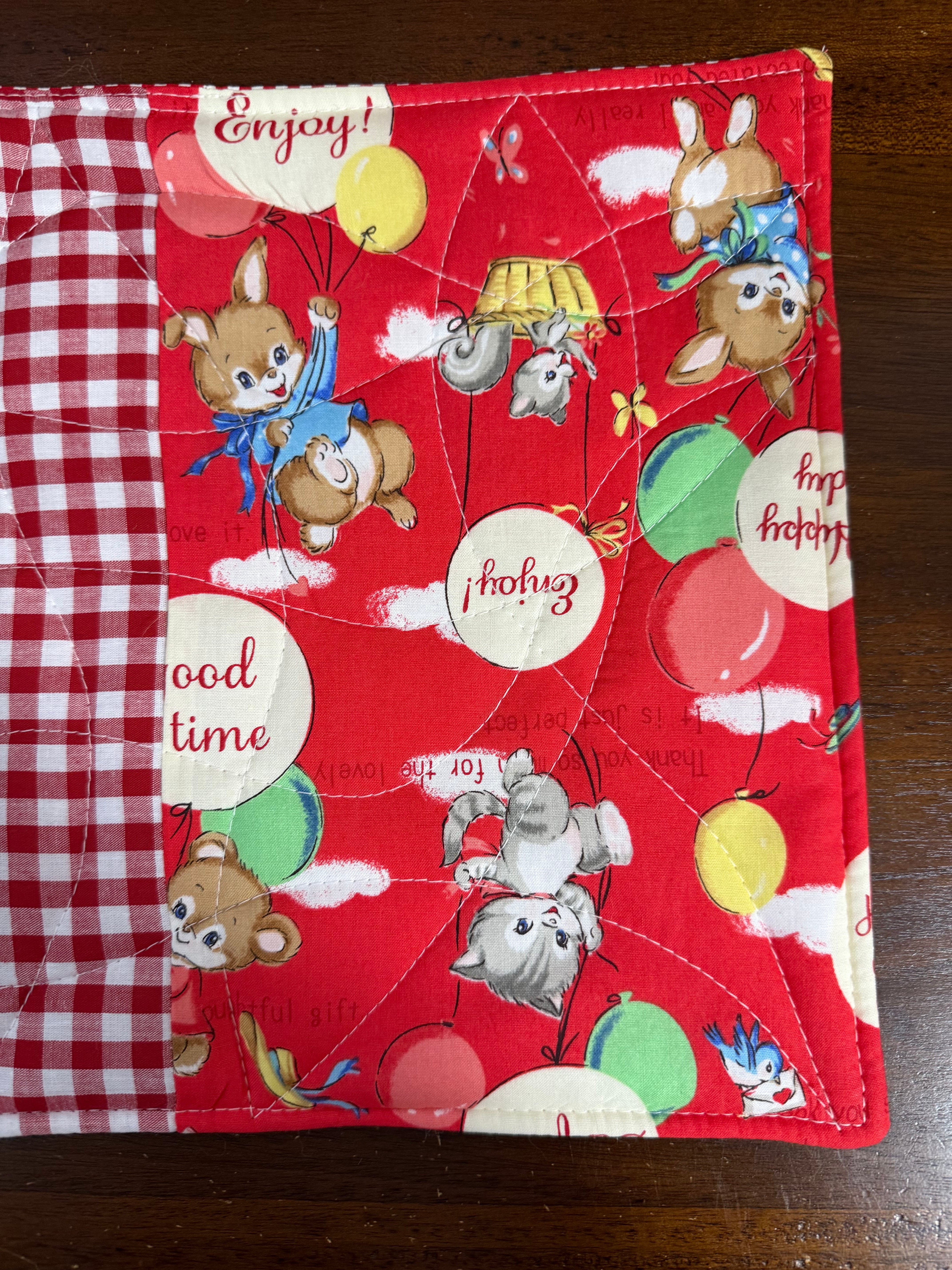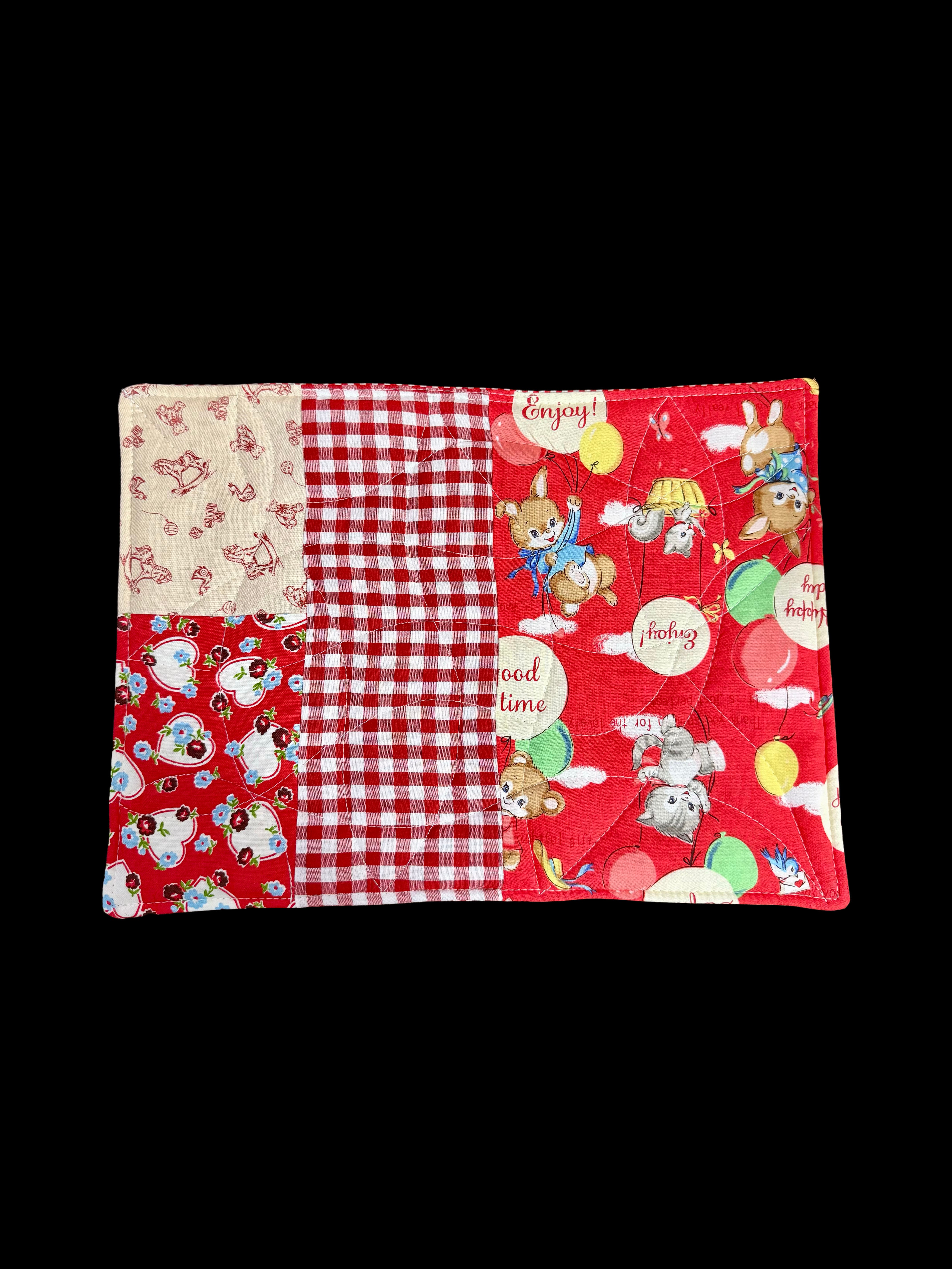 中綿を挟みキルティングステッチを施すことで丈夫に仕上がり汚れたらすぐに洗えるマットです