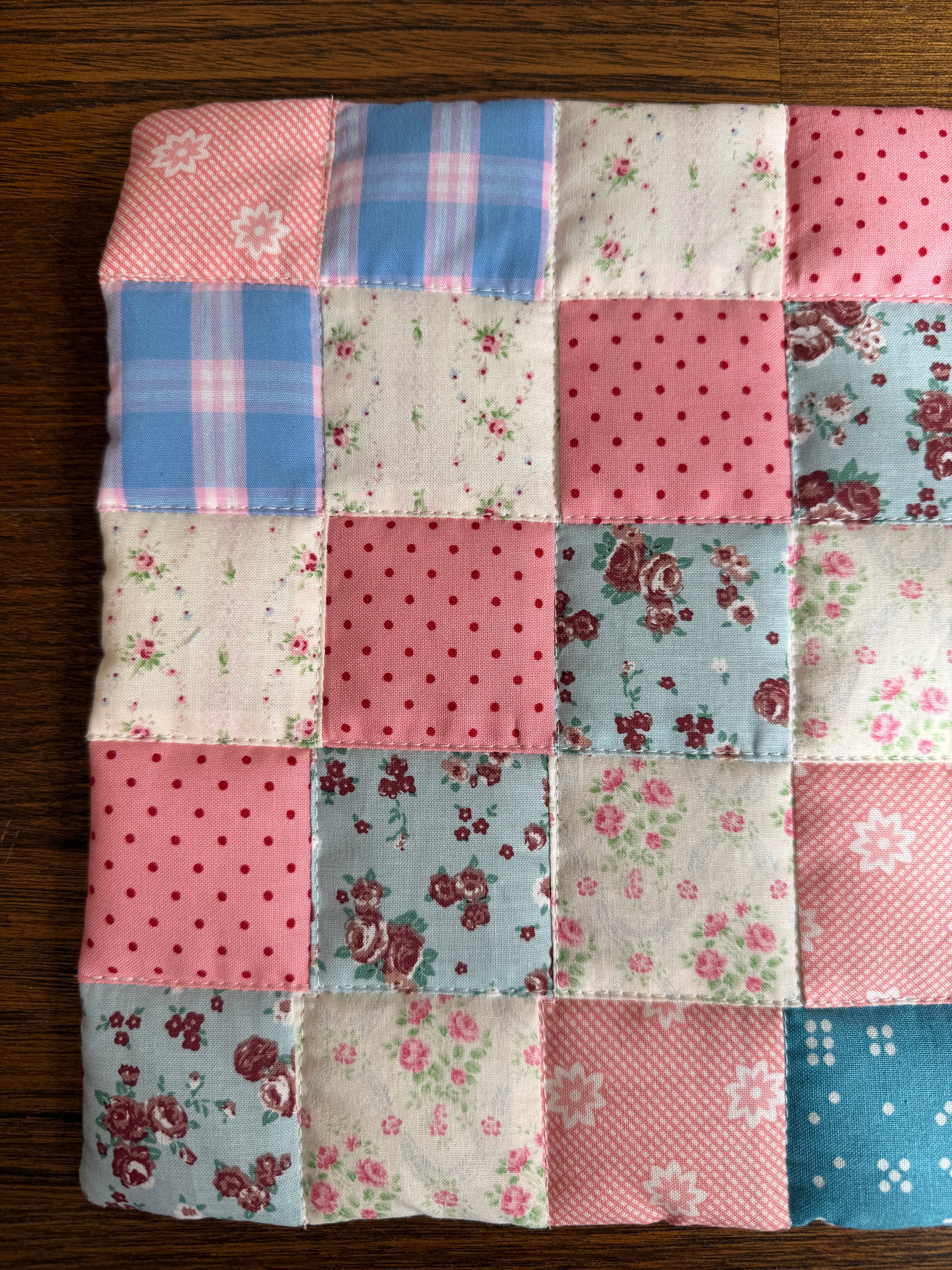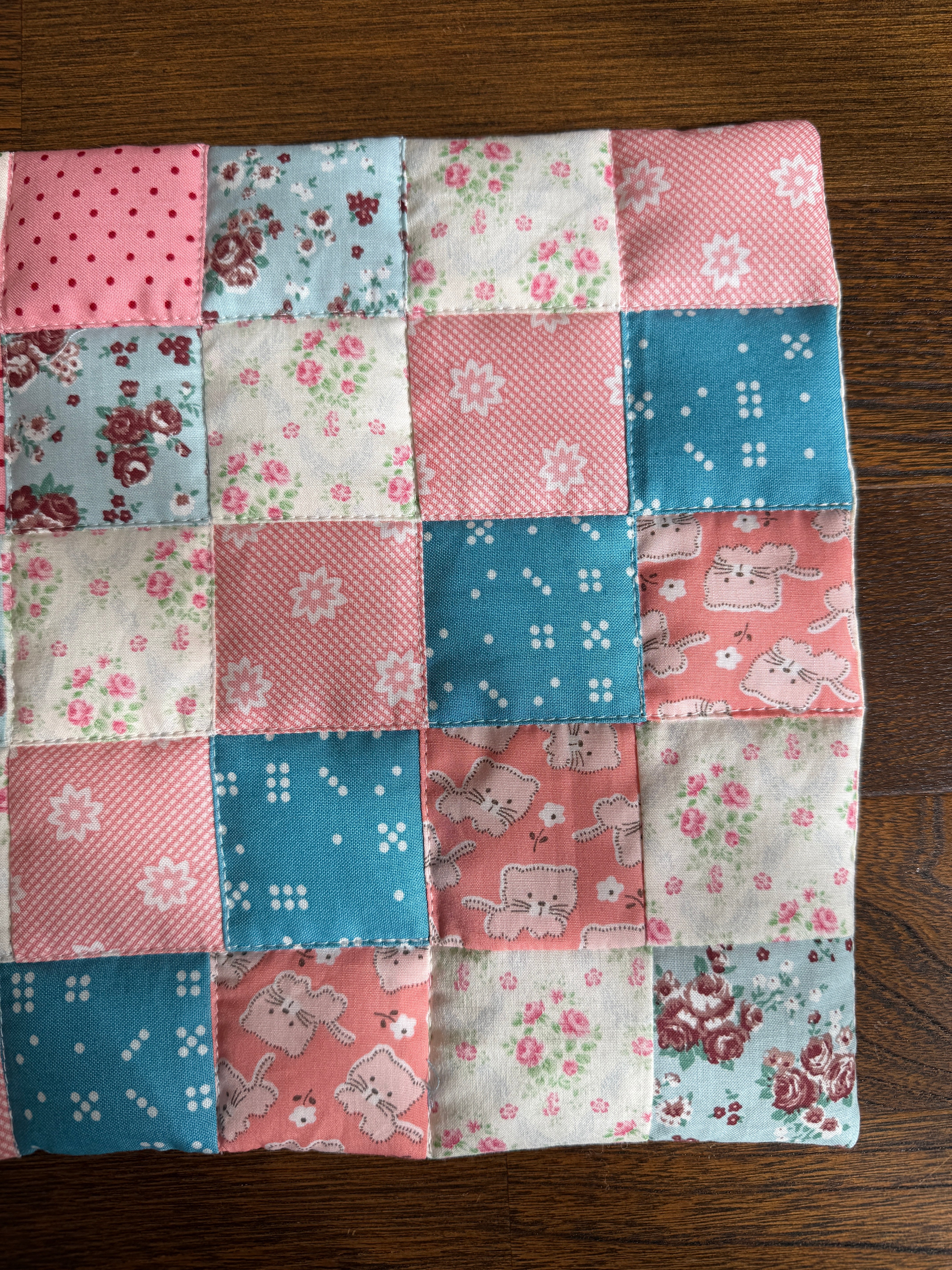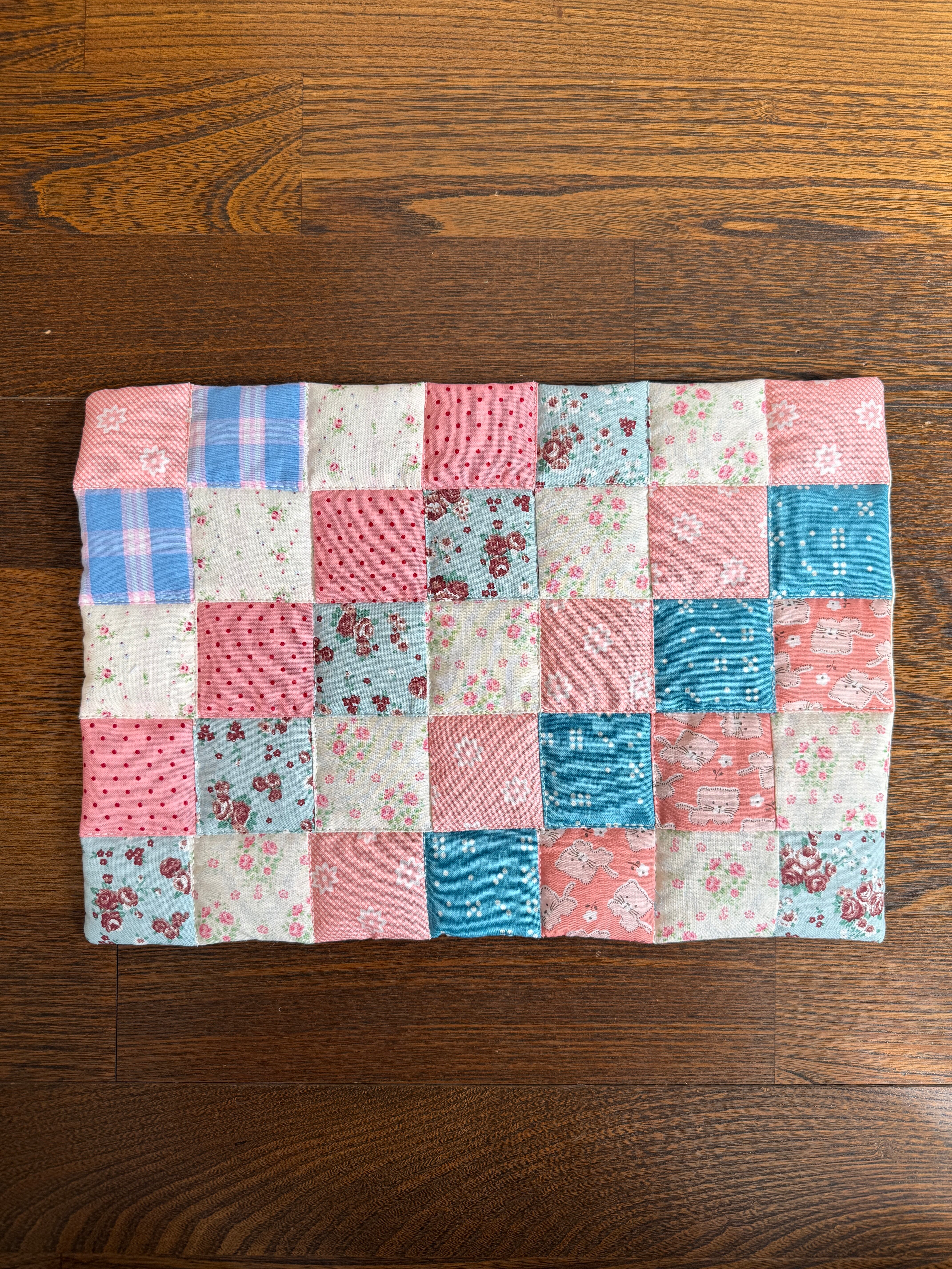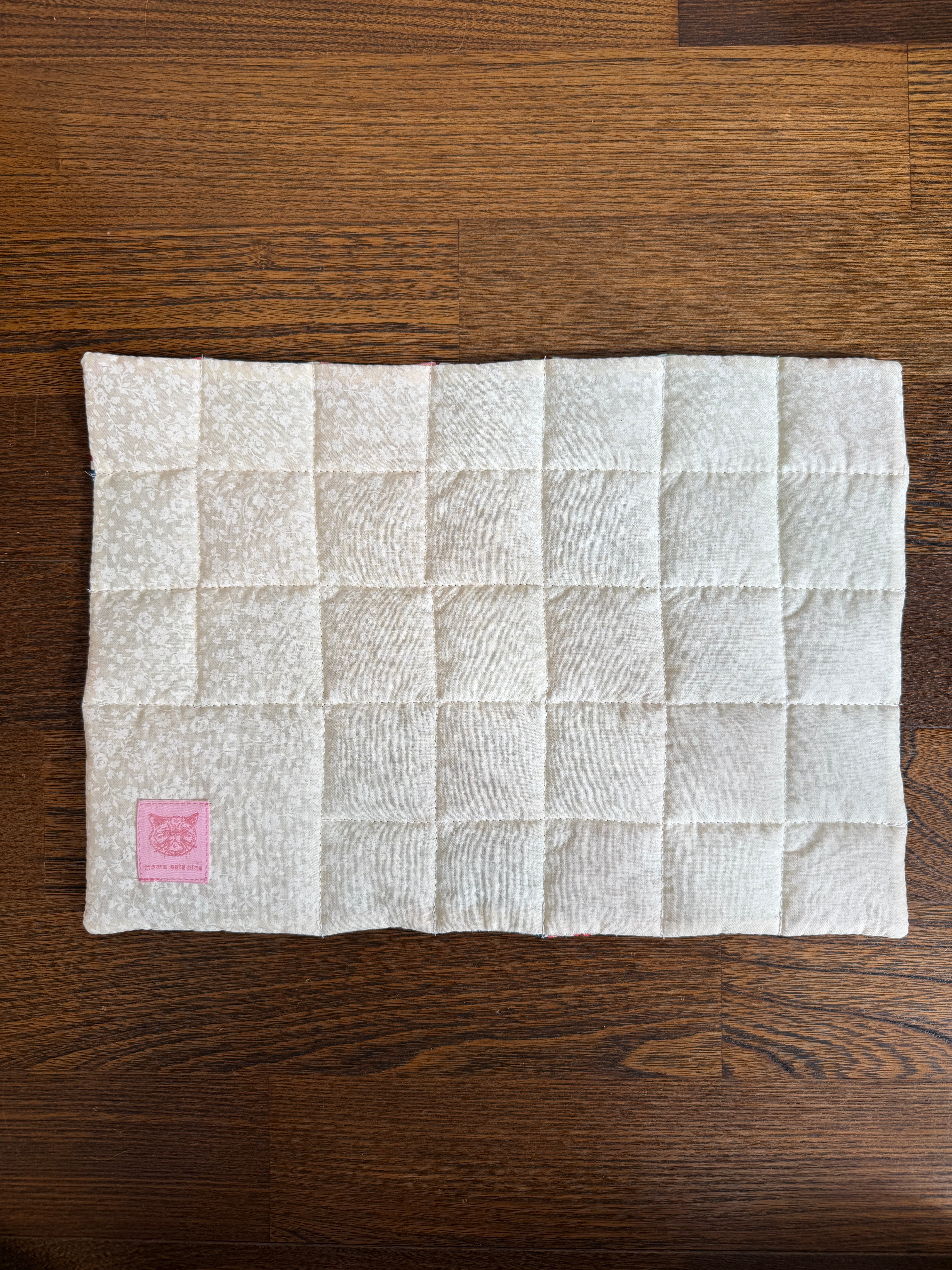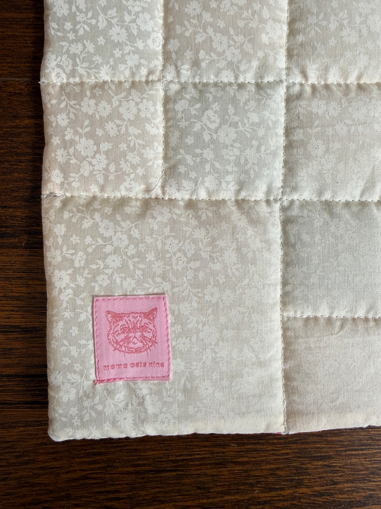 中綿を挟みキルティングステッチを施すことで丈夫に仕上がり汚れたらすぐに洗えるマットです