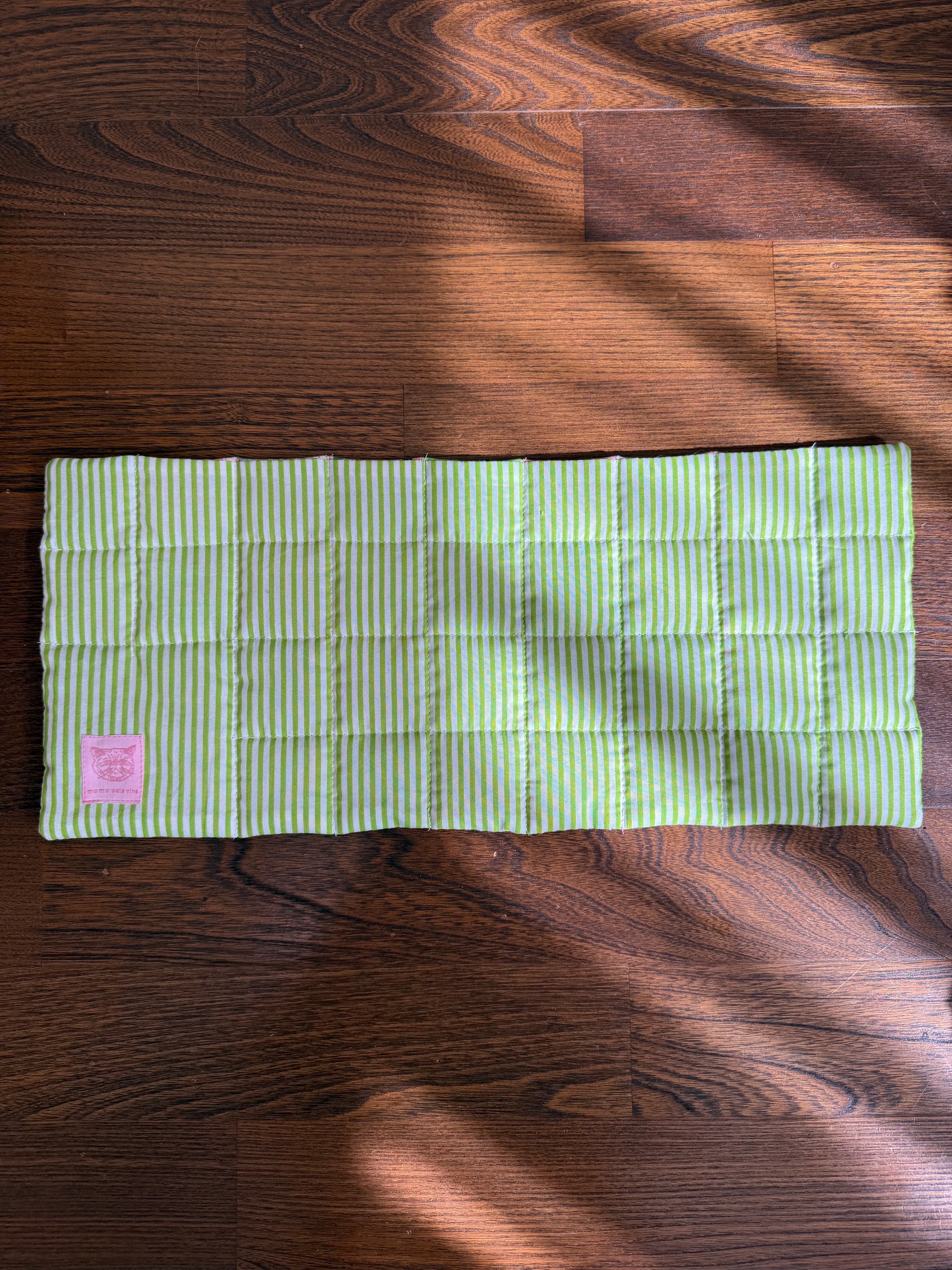 中綿を挟みキルティングステッチを施すことで丈夫に仕上がり汚れたらすぐに洗えるマットです