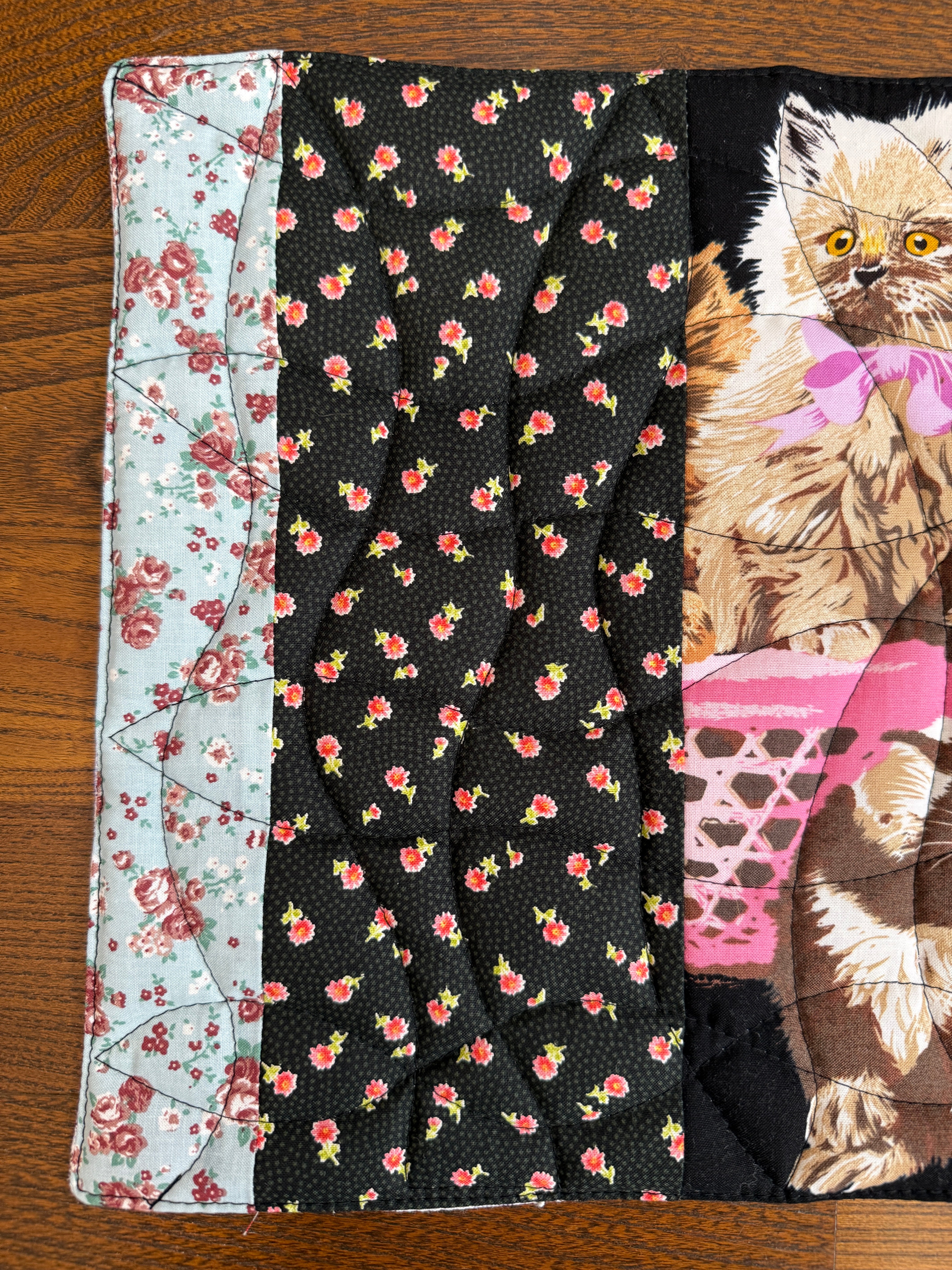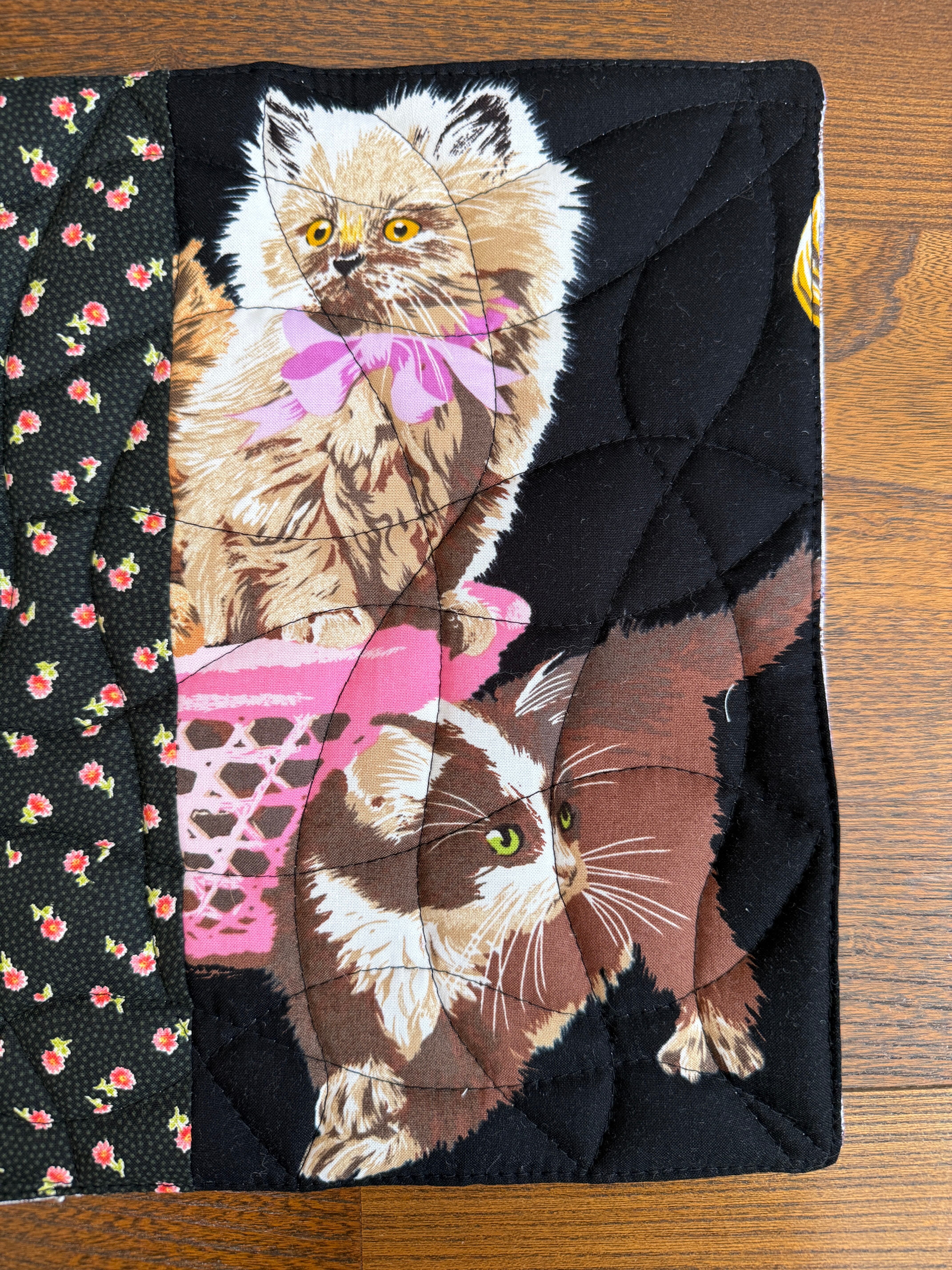 中綿を挟みキルティングステッチを施すことで丈夫に仕上がり汚れたらすぐに洗えるマットです