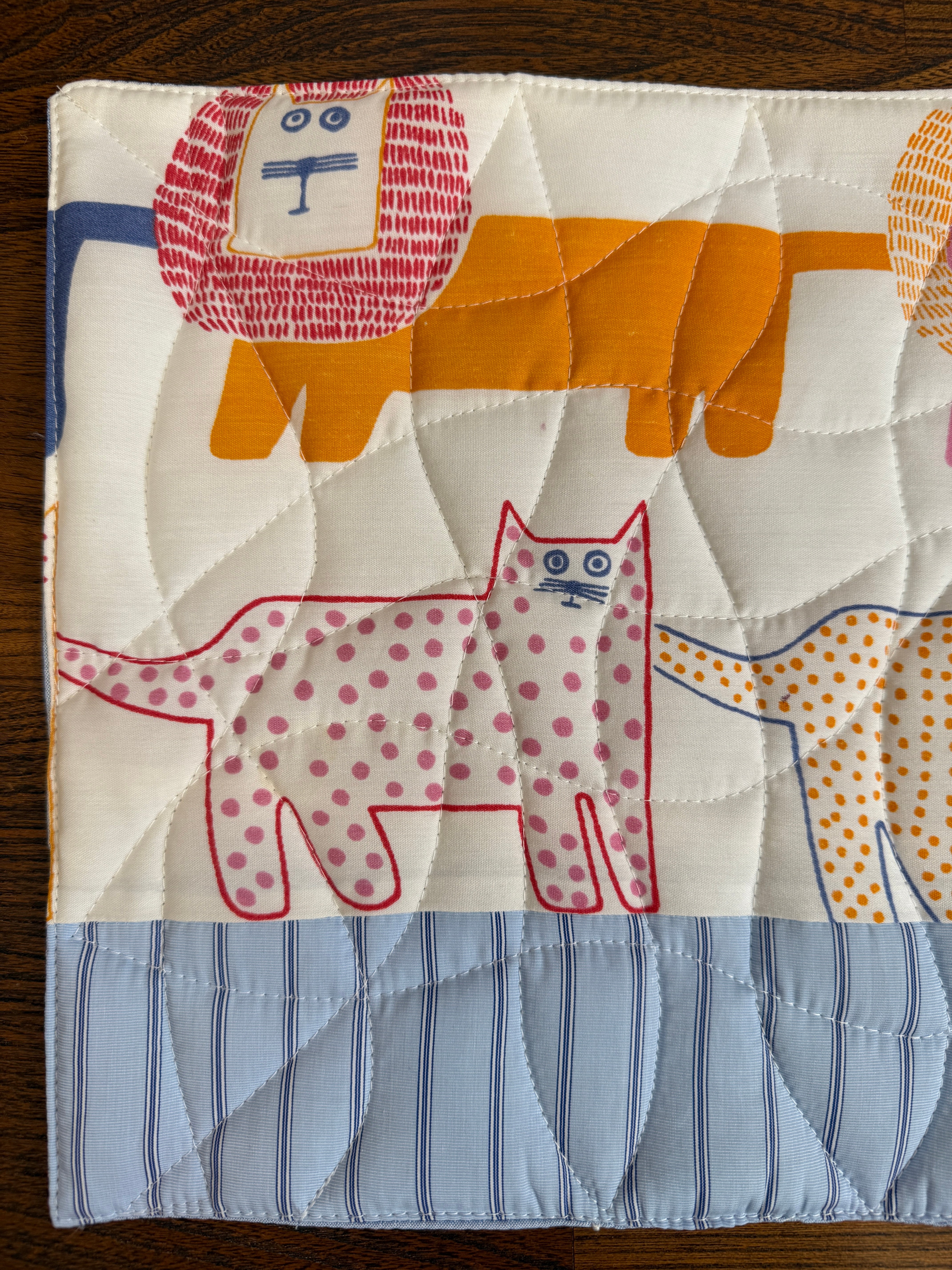 中綿を挟みキルティングステッチを施すことで丈夫に仕上がり汚れたらすぐに洗えるマットです