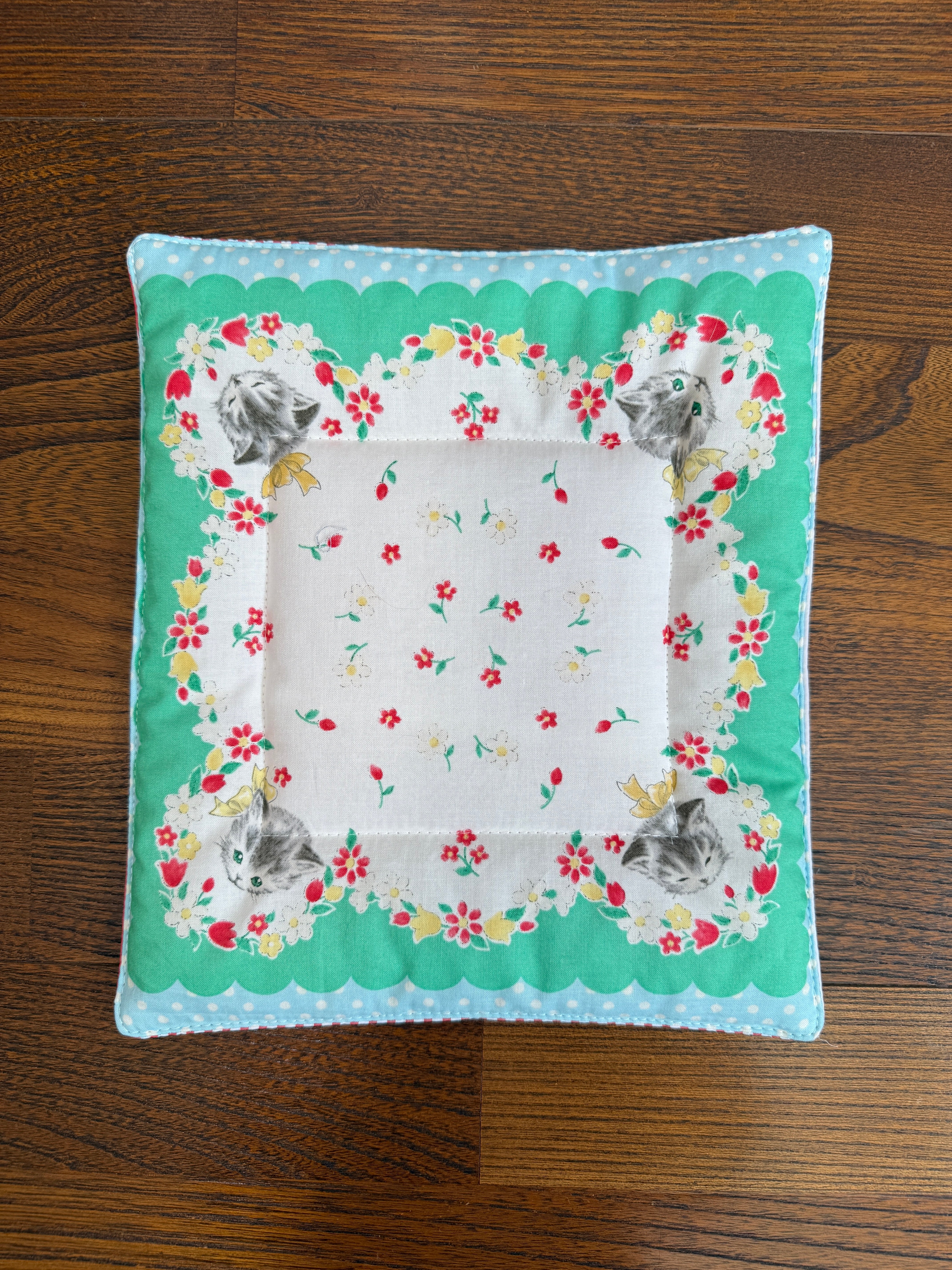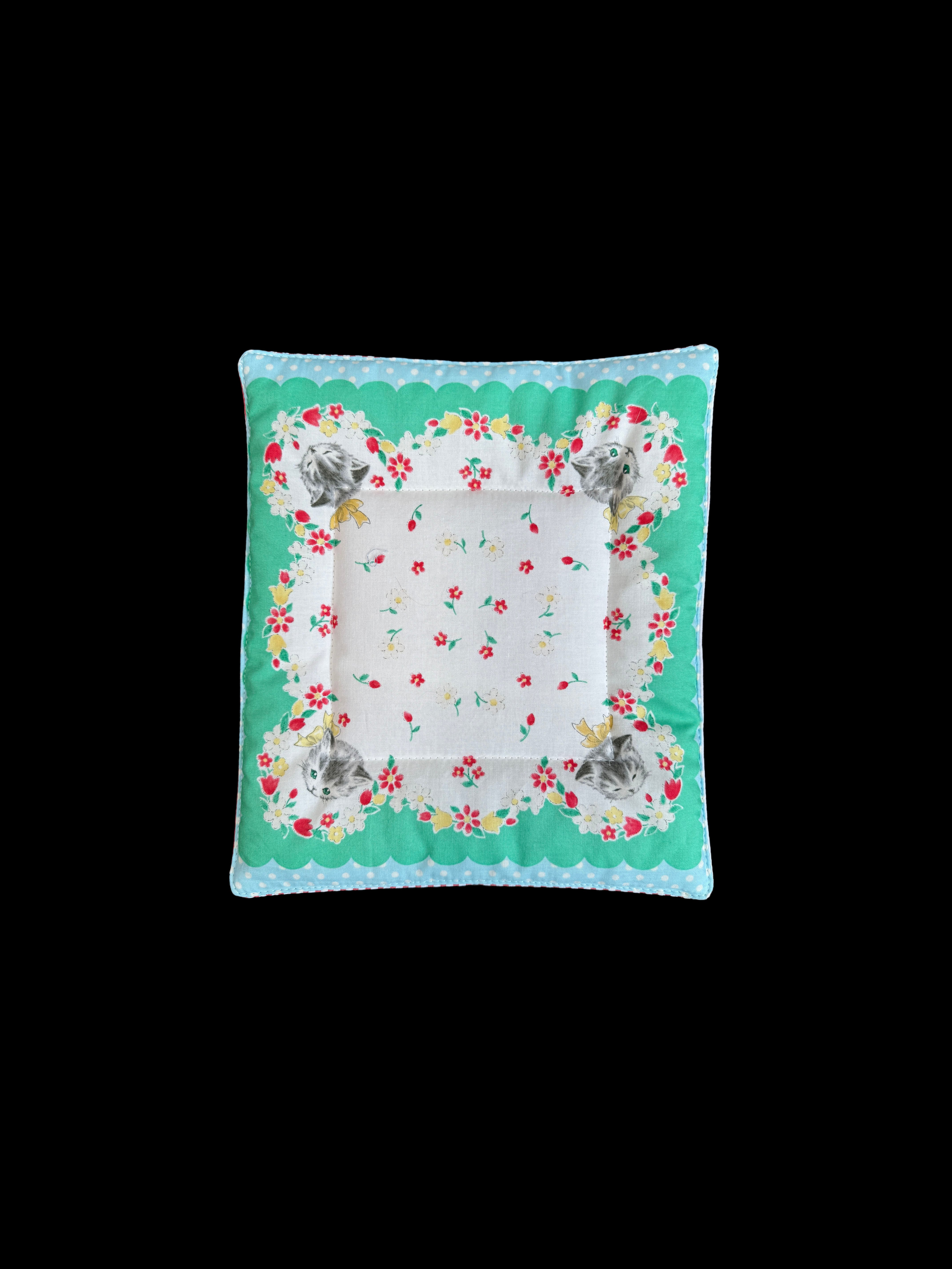 中綿を挟みキルティングステッチを施すことで丈夫に仕上がり汚れたらすぐに洗えるマットです